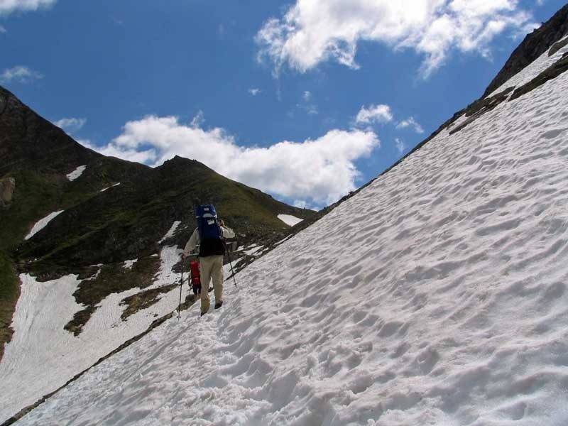 Zunächst gemächlich und dann immer steiler windet sich der gute historische Verbindungspfad zwischen Rima und Alagna in Richtung